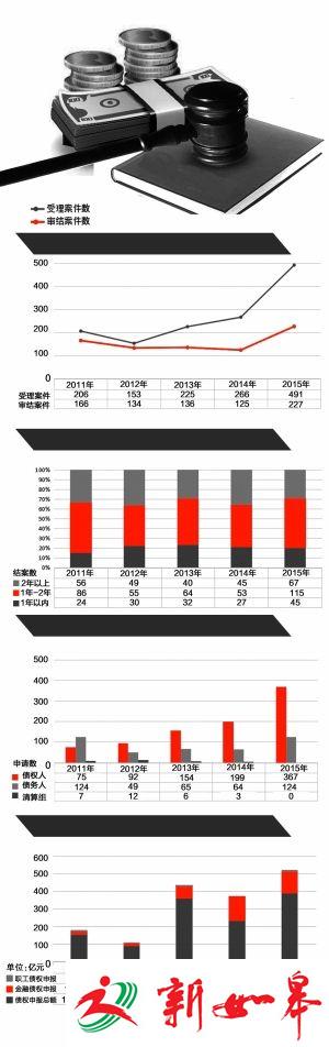 白皮书显示,江苏全省法院对于企业破产案件收案总体逐步增长,收案量在2013年出现上升拐点,2015年更是出现巨幅增长,全年新收破产案件491件,同比增长84.95%。白皮书指出,出现这一趋势变化,既是宏观经济下行压力加大,经济增速、结构、动力出现新变化所决定,也与市场主体逐步认识破产制度价值功能紧密相关,还与人民法院采取系列举措推动破产制度适用密切关联。