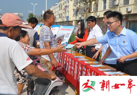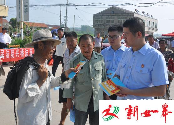 8月15日早晨7时,江苏省射阳县人民法院兴桥人民法庭干警们来到兴桥集市,开展“法治赶大集”普法宣传活动,法律服务贴近群众。