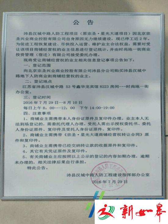 据江苏五星建设集团有限公司总经理马先生介绍,2012年4月,沛县政府就人防工程和北京宗圣公司合作,工程由该公司投资施工,人防工程主体归政府,投资方拥有地下商铺的经营权。为了这次活动,沛县政府还请来了多位明星举行奠基仪式,投资方北京宗圣也借此机会招募建设单位。