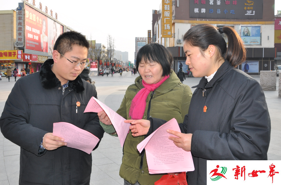 11月25日下午,江苏省射阳县人民法院组织干警开展“国际消除家庭暴力日”法治宣传活动,现场发放《反家暴法》、《妇女权益保障法》法律法规等宣传资料,向市民宣传遇到家庭暴力如何求助以及申请人身安全保护令等维权措施,并现场接受群众咨询。 (沈莹莹 陈 灿 王京广)