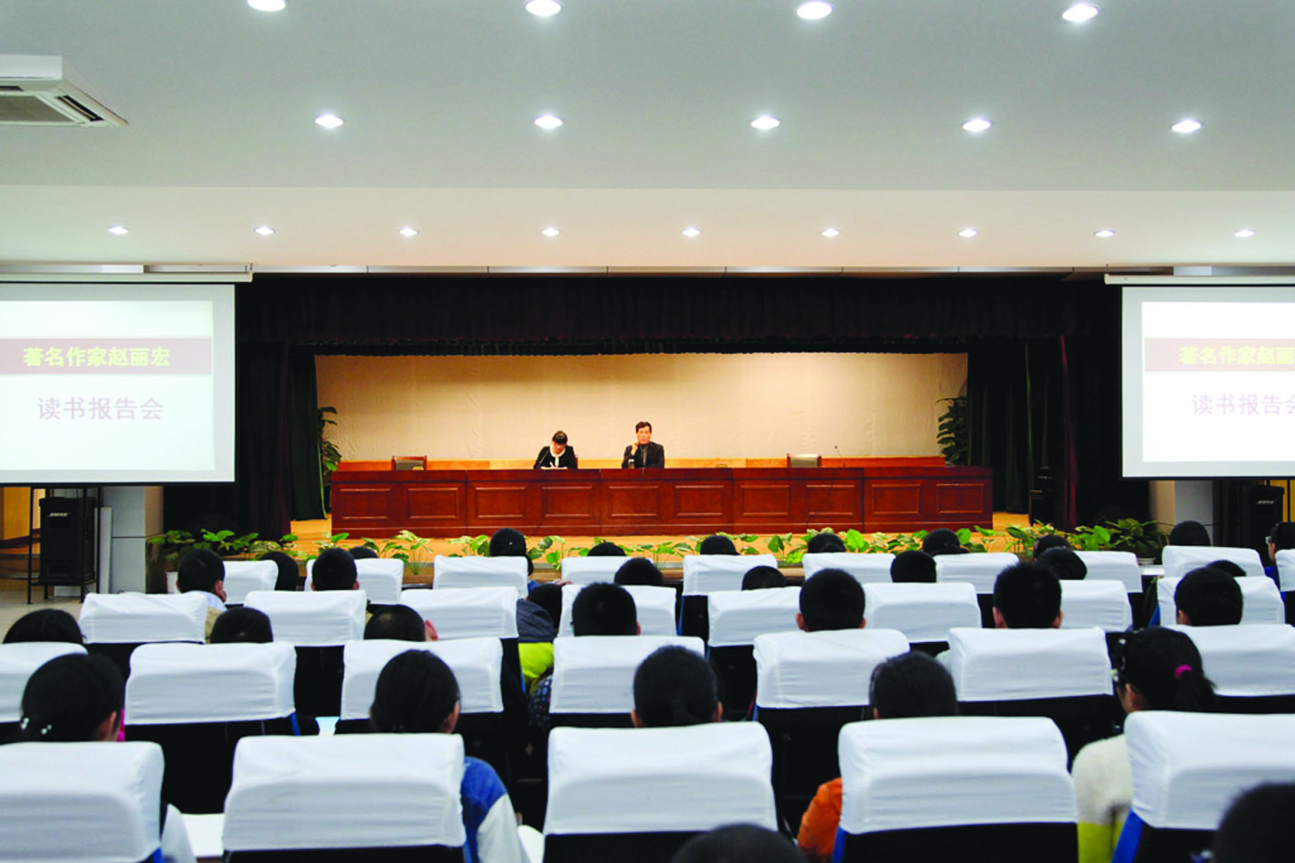 报告会现场,赵丽宏老师一字一句娓娓而谈,充满磁性、和蔼的声音为学生们讲述人与阅读之间的关系,同时也为同学们解答有关阅读上的各种问题。