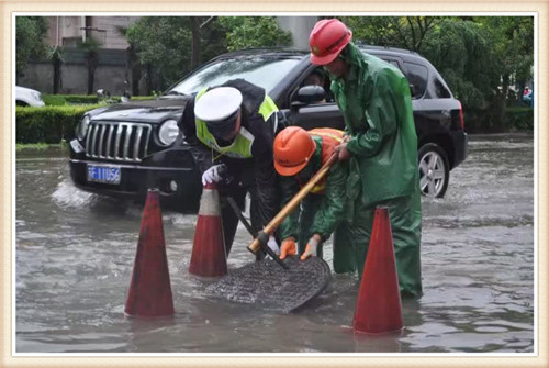 如皋公安、交警、消防、市政、城管、环卫等部门第一时间紧急响应,纷纷赶至现场排涝。