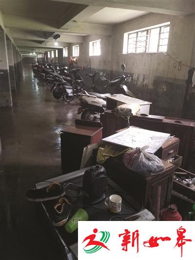 昨天上午,扬子晚报记者来到光明东村20号楼下的车库,吴国泰和徐美英收拾完车库里的垃圾后,才开始着手整理自己被淹的“家”。不到10平方米的房间,躲在车库的一角,阴暗潮湿。大水刚刚退去,在墙上留下了明显的水渍,最深处大约有1.4米。