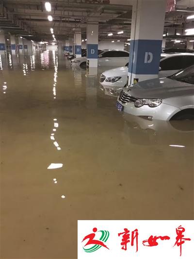 小区车库被淹,不少车辆泡在水里。图片由业主提供