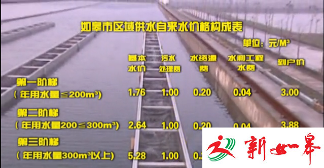如皋市自来水厂客户服务中心主任何小芹介绍,居民生活用水阶梯水价由基本水价、污水处理费、水资源费和水利工程水费相加所得。