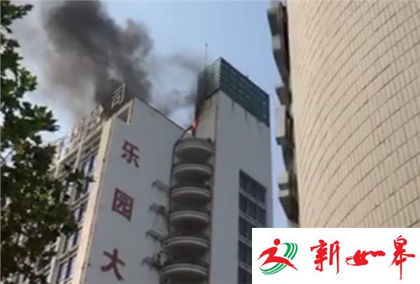 据初步了解,起火点位于乐园大厦楼顶一杂物间,在上午9:31分,大火被成功扑灭,过火面积约10平方米,无人员伤亡。现场高喷车仍在对冒烟区域进行降温处理。