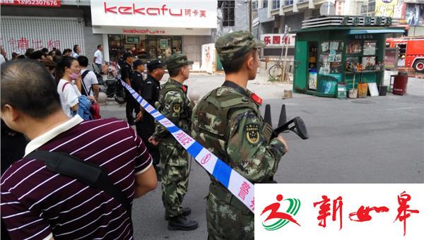 通往火场道路已经被警方封锁拉起警戒线,现场许多消防车参与扑救,两辆高喷车也陆续对失火楼顶进行扑救,现场10多辆消防车轮番供水作业进行扑救,现场公安,武警在通往火场道路进行警戒执勤。