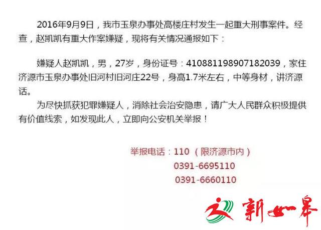 案发后,济源警方发出协查通告