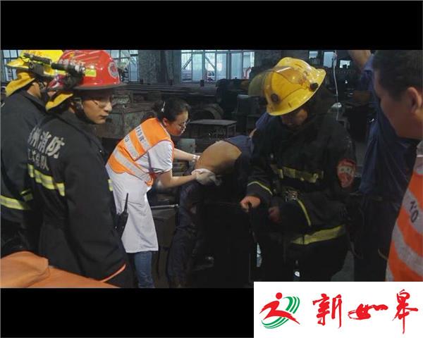 昨天下午1点多,苏州张家港保税区恒隆钢管厂内,1名工人被钢管穿透身体,情况危急。经查,钢管从腹部右侧贯穿至右臀部,工人趴在台子上无法动弹。医护人员先给他输液,维持生命体征,消防官兵破拆钢管,10分钟后工人获救被抬上救护车。工友说,当时钢管矫直机正在运作中,该工人从中间走过,不慎被钢管贯穿腹部,机器自动停止,工友报警求助。