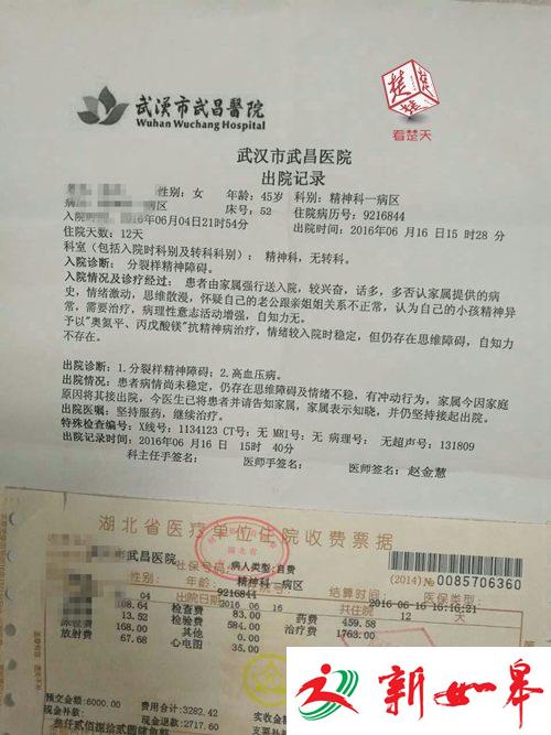 记者看到,今年6月,陈女士在武昌医院的诊断结果是:分裂样精神障碍,存在思维障碍及情绪不稳,有冲动行为。今年7月,省人民医院初步诊断结果是焦虑抑郁状态。