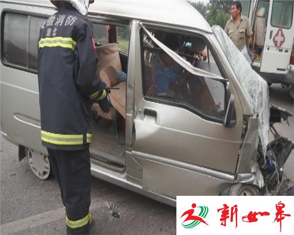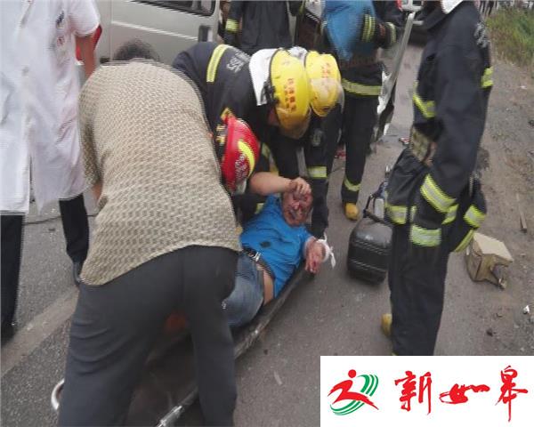 消防官兵赶到现场时,发现事故地点公路上到处是车辆撞击之后的破碎零部件,货车停在公路的一侧,没有人员被困,而面包车与货车之间相隔10多米,面包车车头严重变形,驾驶员受伤严重,头上脸上都是血。