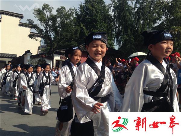 “古乐声声,欢乐阵阵。击缶而歌,文化传承……”今天上午,南京夫子庙小学2016届一年级新生“开笔礼”仪式在夫子庙广场举行。仪式在国乐团演奏的《礼.记大学》中拉开了帷幕。
