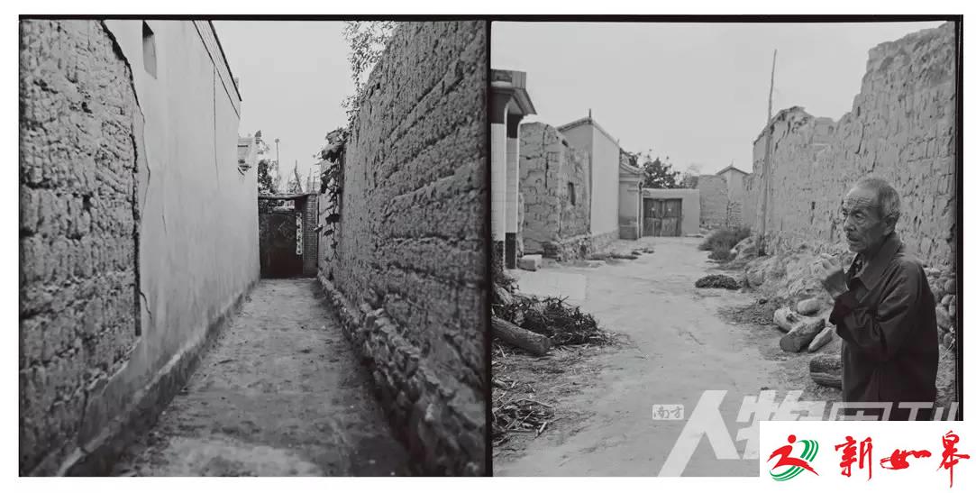 ●左:青城镇城河村的高承勇老宅;右:驻足停留的邻居
