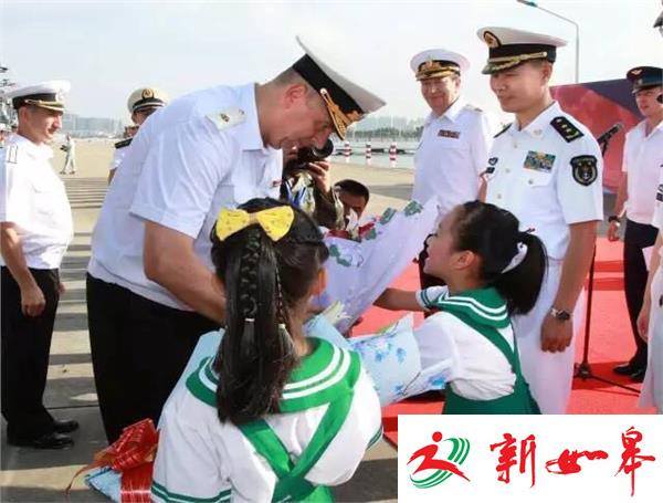 7时许,俄舰艇编队驶近军港码头,鸣放21响礼炮致敬,随后,中国海军鸣放21响礼炮还礼。8时许,俄海军“特里布茨海军上将”号驱逐舰缓缓靠上湛江军港码头,俄海军滨海区舰队司令库利奇少将和“特里布茨海军上将”号驱逐舰舰长科尔帕西科少校走下舷梯,向联演总导演报告编队抵达,2名中国少年儿童向库利奇少将和科尔帕西科少校献花。随后,俄舰艇编队其他舰艇分别靠泊指定码头。