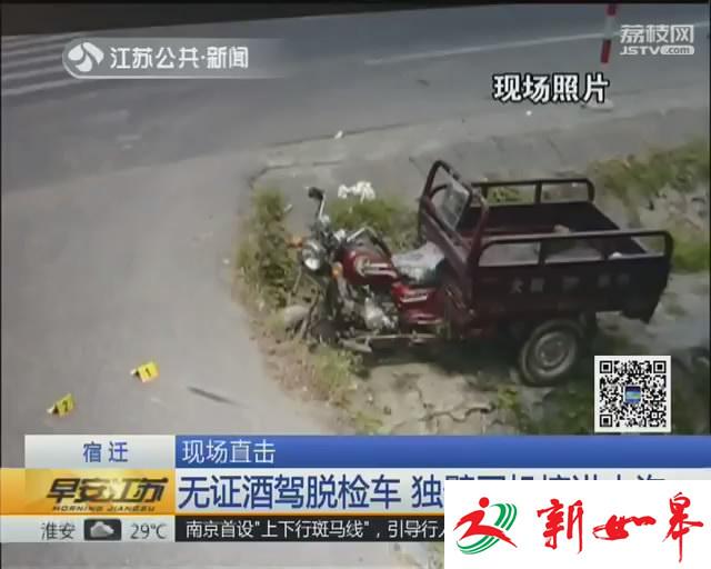 独臂司机无证酒驾脱检车 摔进水沟
