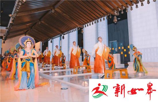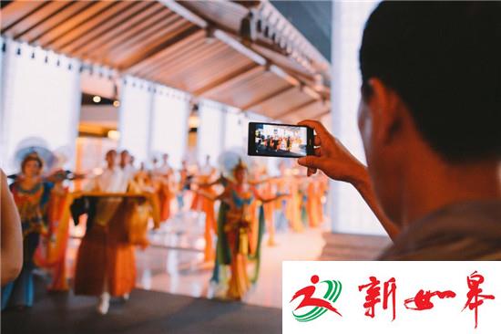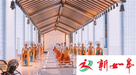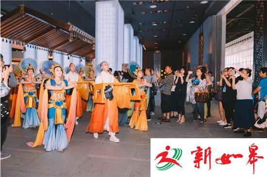 9月15日上午,在大报恩寺遗址公园的“千年对望”时空长廊,一群异常瞩目的僧袍少年突然出现,手托案几,面带笑容,在他们周围,飞天美丽动人,丝裙飘带,翩翩起舞,让不少行人纷纷投以好奇的目光,驻足围观。