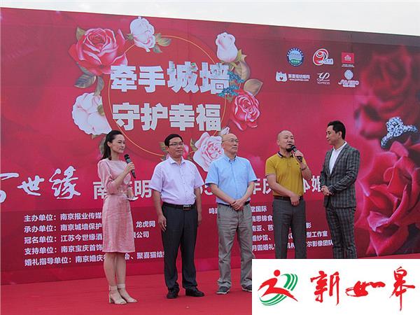 下午17:00, “牵手城墙,守护幸福”——今世缘?南京明城墙650周年庆集体婚礼活动正式开始。有8对新人依次上台分享各自爱的宣言,甜蜜又温馨,而参与活动的65对新人们排成心型图案进行的唯美航拍,也是一道十分亮丽的风景。“虽然没有华丽的舞台,但这场温馨和坚守的婚礼让我们倍感幸福。”一对参与集体婚礼的新人说。
