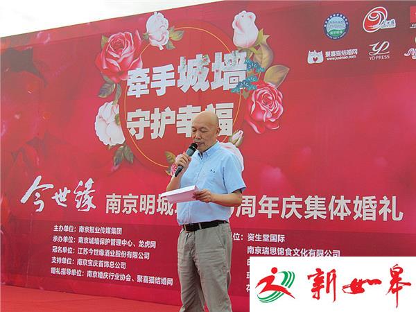 作为此次集体婚礼的主婚人,南京城墙保护管理中心专职副书记曹方卿上台致辞为新人们“主婚”;龙虎网董事长戴亦钢上台讲话,为新人们“证婚”;江苏今世缘酒业股份有限公司南京分公司总经理陈玖全也上台为新人们送上了美好的祝福。