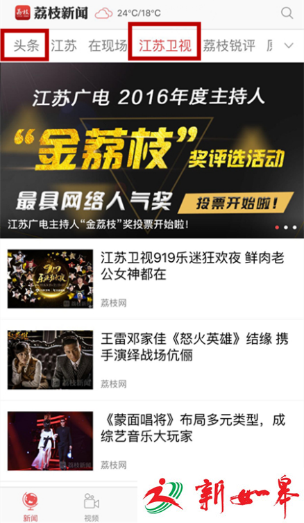 点击“头条”OR“江苏卫视”