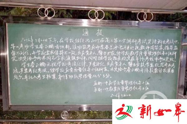 因此事件受罚的还有两位老师。通报指出,该场监考教师李春兰、承包片区巡视教师周华军指导监督不到位,与学校要求不一致。为教育本人,警示大家,决定给予两名教师全校通报批评,“同时按学校相关规定在年终考核中予以兑现”。