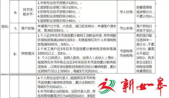 附:南京市积分落户指标及分值表