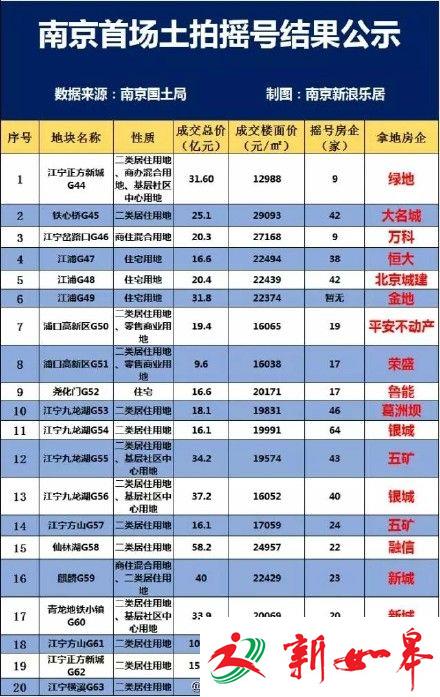 土地摇号结果 图片来源:南京楼市