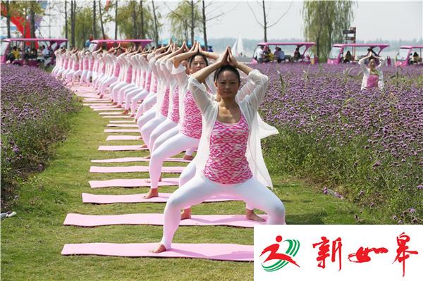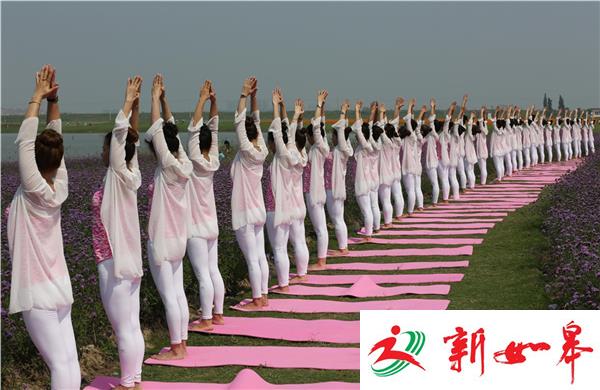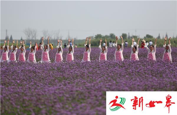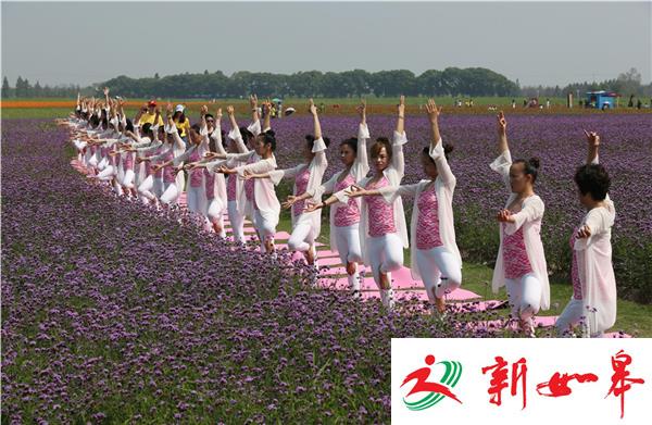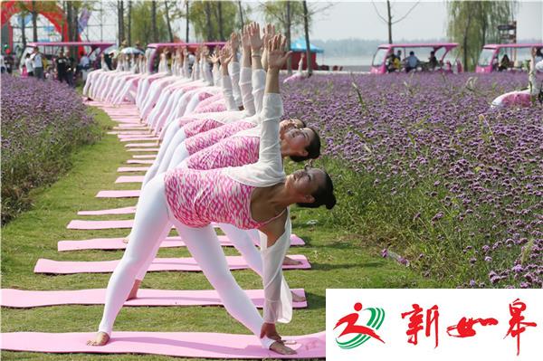 9月24日,瑜伽爱好者在普罗旺斯花海中练习瑜伽。当日,江苏南京高淳固城湖水慢城湿地公园开园, 60余名瑜伽爱好者来到园区内的百亩普罗旺斯花海中练习瑜伽,愉悦身心。