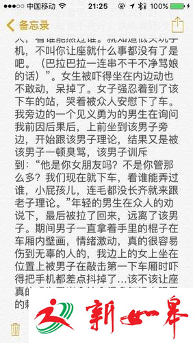 “@桃纸的围脖”回忆道,大概在大行宫站,被骂女孩哭着下了车,而大叔仍在骂,小伙子也继续跟大叔理论。