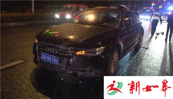 现场看到有许多市民在路面围观,事故交警正在现场进行勘查,一辆黑色奥迪轿车车头朝南停在路中央,车头损毁严重,而奥迪轿车车头左前方一辆扭曲变形的电动车横躺在路面,现场路面散落许多车辆撞击后碎片,为了尽早恢复交通秩序现场事故拖车正在对车辆进行清障作业。