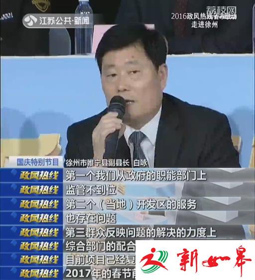 在直播现场,徐州睢宁县副县长白咏表示,造成王营小区的拆迁户迟迟拿不了新房,与职能部门的监管、当地的开发区的服务以及综合部门问题处理的能力上有着密切的关系。