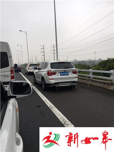 今天下午,京沪高速无锡-苏州段非常拥堵,致使准备进入无锡梅村服务区的车辆已经排队到高速路上。