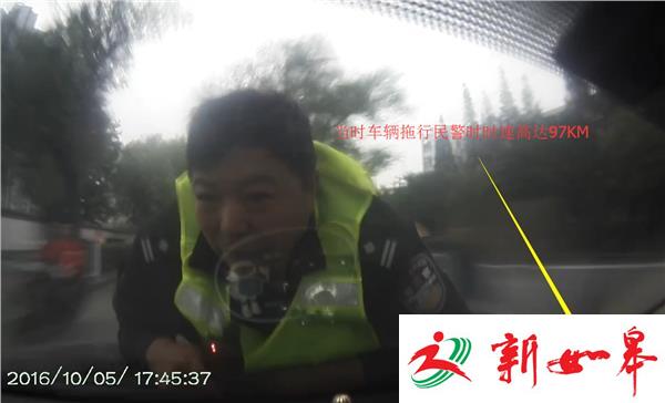 随后驾驶员便疯狂加速向北逃离至湖北路,又沿湖北路逆行向西行驶,期间王某车上的行车记录仪显示速度最高时速达到97公里,中间几次拐弯时都金警官都险些被从引擎盖上甩下,直到车辆再次拐回到如意路上时,由于车速太快,将金警官的半个身体甩了下来,驾驶员看金警官表情痛苦,最终才停了下来。