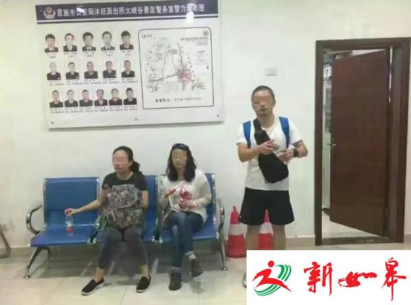涉事游客及同行人员被带至公安机关。网曝打人女游客(左一)称自己是湖北省某高官的妹妹。