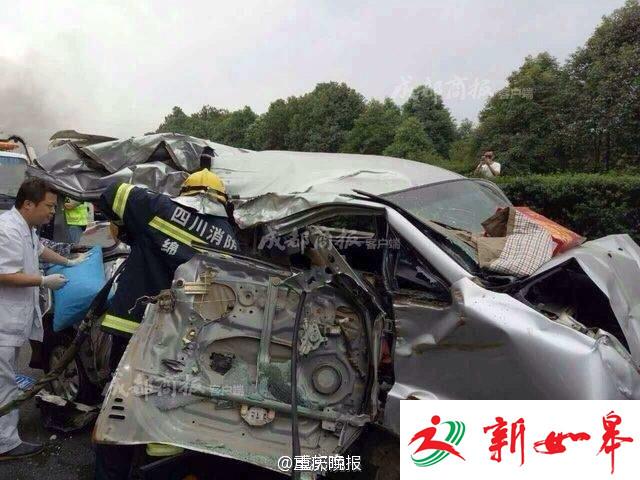 【京昆高速5车相撞燃烧致4死3伤】 今天中午12点36分,京昆高速绵阳段发生5车相撞并起火燃烧,造成4人死亡、3人受伤住院、5车受损。事故原因正在调查中。目前事故现场已处理完毕,附近车多排行。