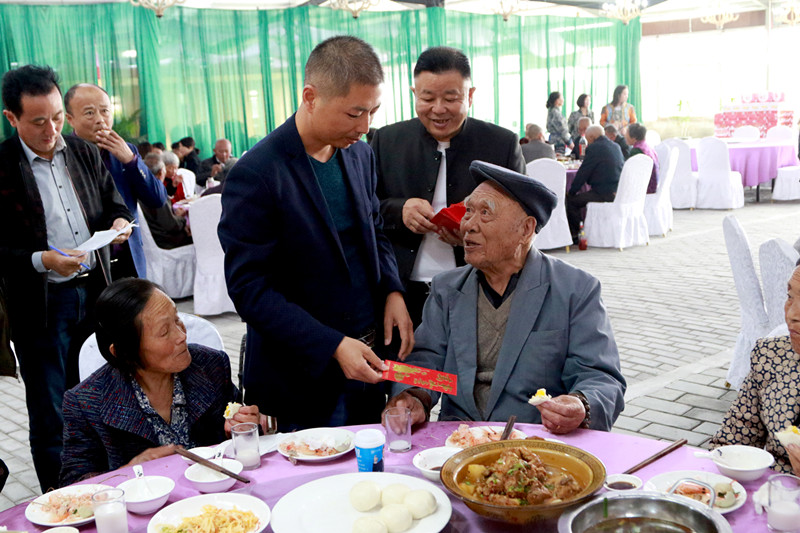 午饭过后,杨国宏为老人们发放节日礼物,羊博士特色羊肉春卷和牛奶。老人们拎着礼物一个个乐呵呵的。让老人们意想不到的是,杨家三兄弟还根据年龄为到场的老人们发节日红包,现场共发放红包资金达15000余元。陈奶奶激动地说:“除了牛奶、春卷,还有红包,杨家三兄弟给了我们一个充满惊喜的重阳节。”