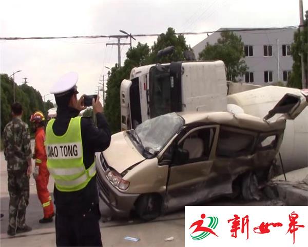 混凝土搅拌车侧翻在路边,罐内大量混凝土流淌出来,旁边的面包车被压扁,碎玻璃散落一地。搅拌车司机双腿被座椅死死卡住,身体悬空,十分痛苦。消防队员把车内枕头、棉被垫在司机身下,再用扩张器对受挤压部位进行扩张,减轻其压力。由于槽罐车罐体里面装了有约二十吨的混凝土,司机腿被仪表台和座椅卡住,救援十分困难。消防队员在方向盘上系上钢丝绳,利用消防车作牵引,逐步增大空间,成功救出被困司机。据搅拌车司机介绍,他当时由东向西过十字路口,面包车司机由南向北行驶,就在两车即将相撞的一瞬间,他急转方向,致使车头斜顶着面包车向前推进,才避免了正面相撞。但转弯过急,失控发生了侧翻。万幸的是,两个司机均无大碍。目前,事故原因正在进一步调查中。