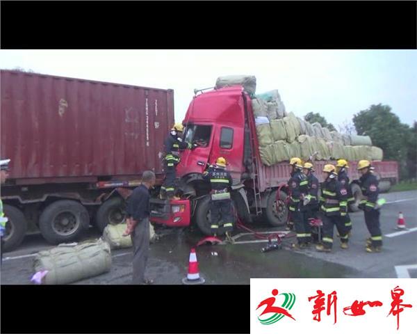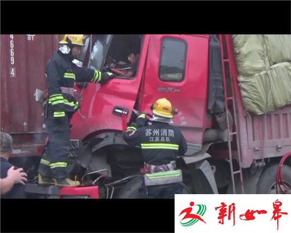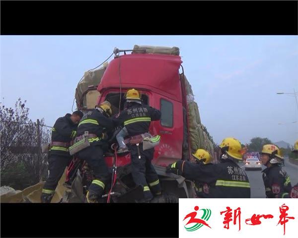 昨天(10月7日)早上5时38分,苏州市消防支队常熟大队接到110中心报警称:位于常熟尚湖镇王庄压顾线路段发生一起交通事故,有1人被困,急需救助。接到报警后,大队迅速调派尚湖中队3辆消防车18名消防官兵赶赴现场处置。中队消防官兵到达现场后,发现两辆货车发生追尾,追尾货车车头严重变形,司机被卡在驾驶室内无法动弹。了解情况后,中队指挥员立即命令一组队员维护现场秩序;命令一组队员利用液压剪进行破拆救援。