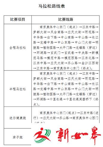 2016年度南京国际马拉松比赛组委会指定的比赛路段和交通管制路段。含全程马拉松路线、半程马拉松路线、迷你健身跑(5公里)路线。详见附件一。