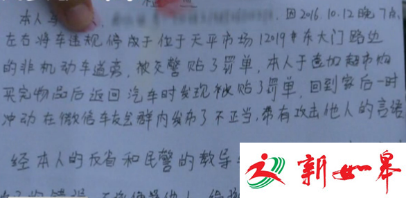 马某称,只是因为近期琐事烦心、心情郁闷,加上一时冲动,才会犯下大错。但没想到会产生这样严重的后果。在民警的教育下,马某也意识到了自己行为的不当之处,并写下了深刻的检查。“现在十分后悔,不应该因为一时冲动谩骂交警,以后不会再犯这种错误。”