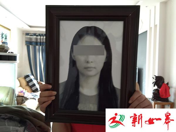 张晓燕家人拿着张晓燕的遗像。