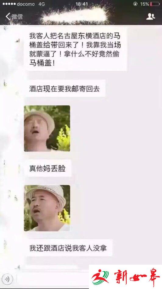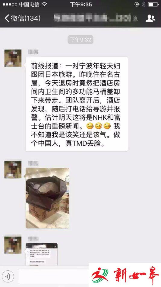 据微博爆料,一对宁波年轻夫妇跟团日本旅游,离开名古屋酒店时,竟然把卫生间多功能马桶盖拆卸下来带走,团队离开后,酒店发现打电话给导游,并报警,导游跟游客再三确认,游客说没拿,导游跟酒店据理力争,说游客没拿,最后,游客行李箱中查出…….酒店要求导游马上寄回……