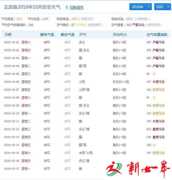还有家长提出,孩子是否因为空气问题,造成上述症状。家长们称,过去几天空气质量不太好。“北京时间”(微信号:Btimedc)查阅正定县过去几天的天气情况,发现10月15日、16日两天当地空气轻度污染,17日当天为中度污染。
