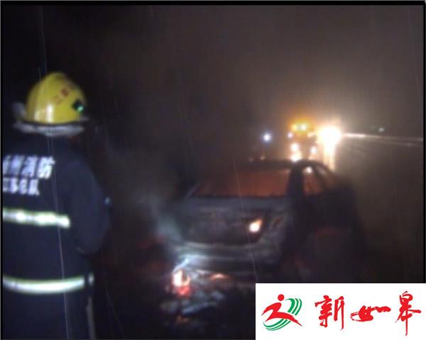 10月20日晚6点,启扬高速扬州郭村服务区附近,一辆轿车因雨天路滑发生失控,撞上路边护栏,并引发自燃。 消防队员赶到后,立即拿来高压水枪进行扑救。很快火被完全扑灭,但轿车已经被烧成了空壳。目前,交警部门正对事故做进一步调查。