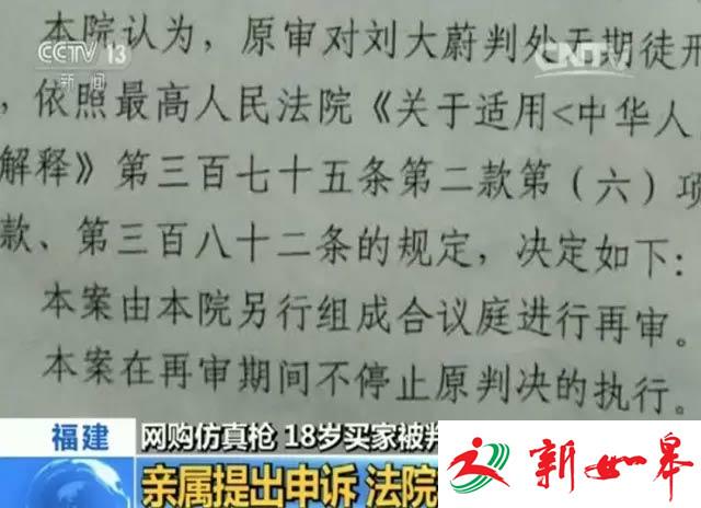 因为网购了“仿真枪”,在还未收到货物的情况下,就被判无期徒刑,刘大蔚和他的亲属无法接受,再次提出申诉,要求案件重审。因此,在此案宣判一年后,2016年10月18日下午,福建省高级人民法院官网通报称,福建高院表示,经依法复查,作出再审决定,认为原判以走私武器罪,判处原审被告人刘大蔚无期徒刑,量刑明显不当,刘大蔚亲属的申诉符合重新审判的条件。