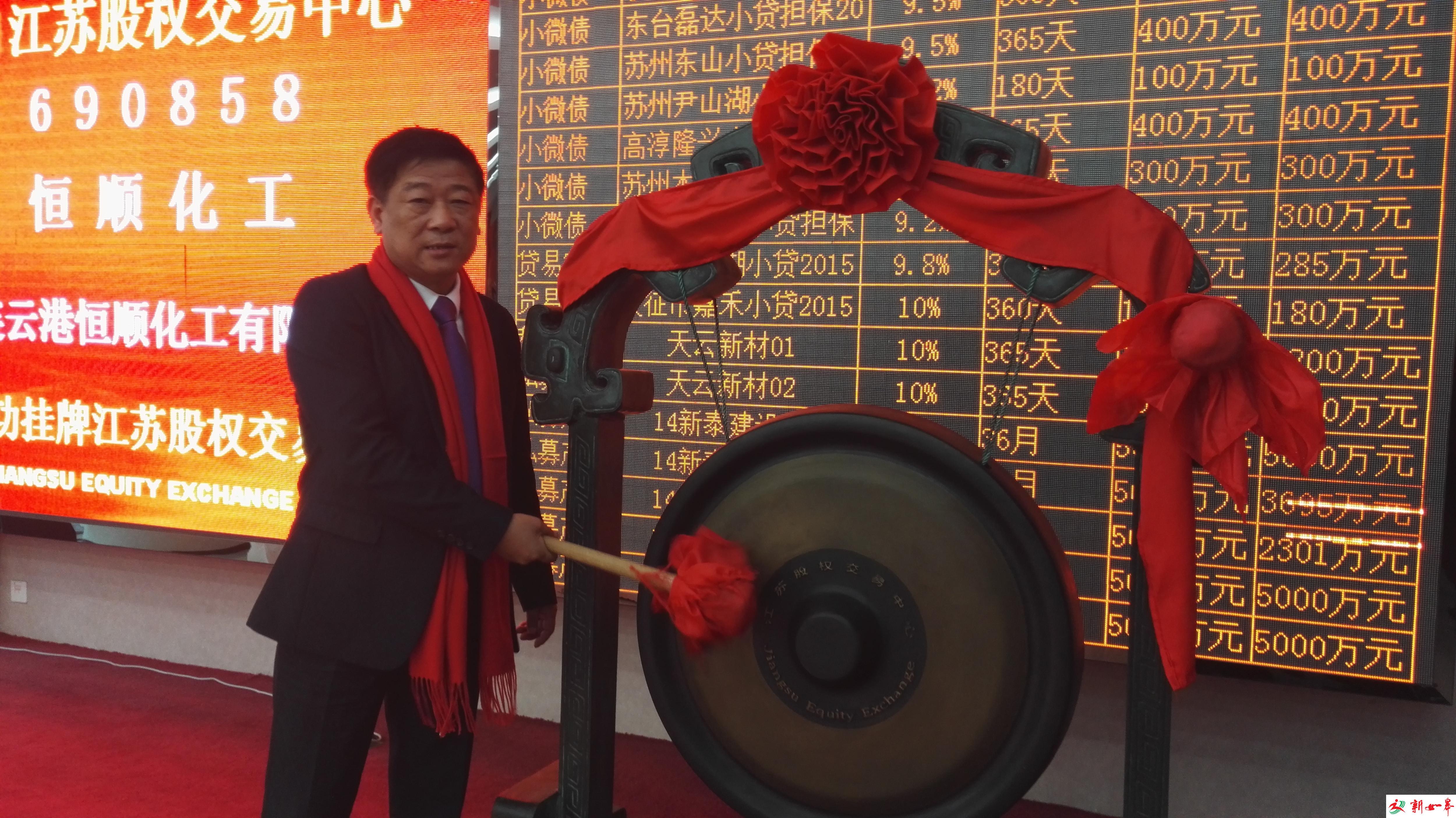江苏华特建筑装饰股份公司董事长毛桂余敲锣上市