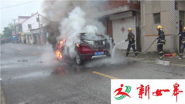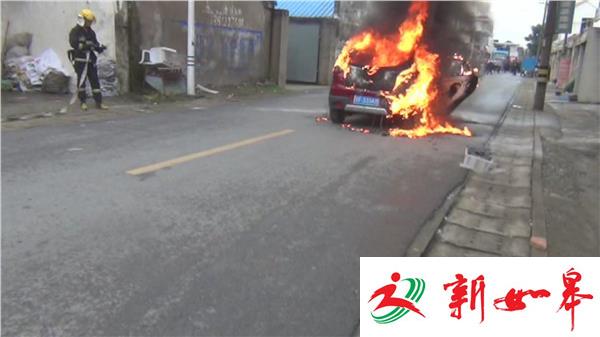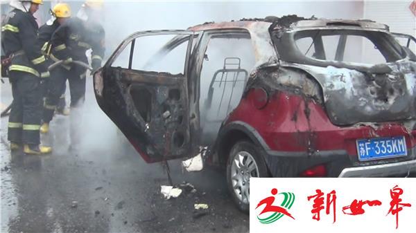 10月23日11时23分,位于江苏省南通市西亭镇一超市门口一辆私家车突然起火。消防部门接到报警后,迅速赶赴现场进行救援。