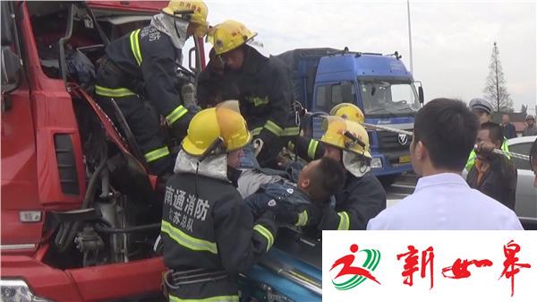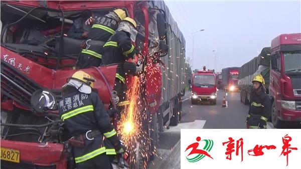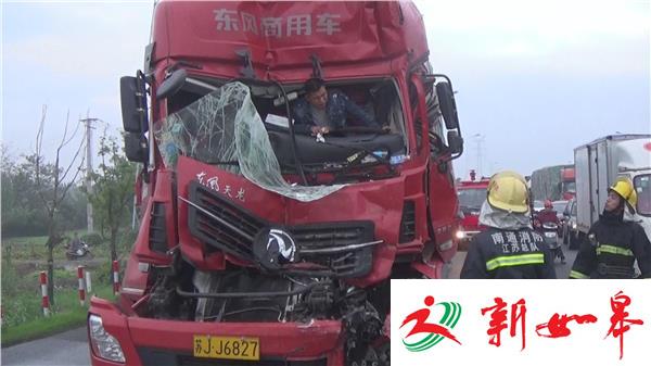 10月24日5点55分左右,在江苏省南通市四安镇,一辆车牌为苏WJ6827货车与另外一辆货车发生追尾事故,货车驾驶员被卡在车里,现场一片狼藉。路人见状立即拨打救援电话。