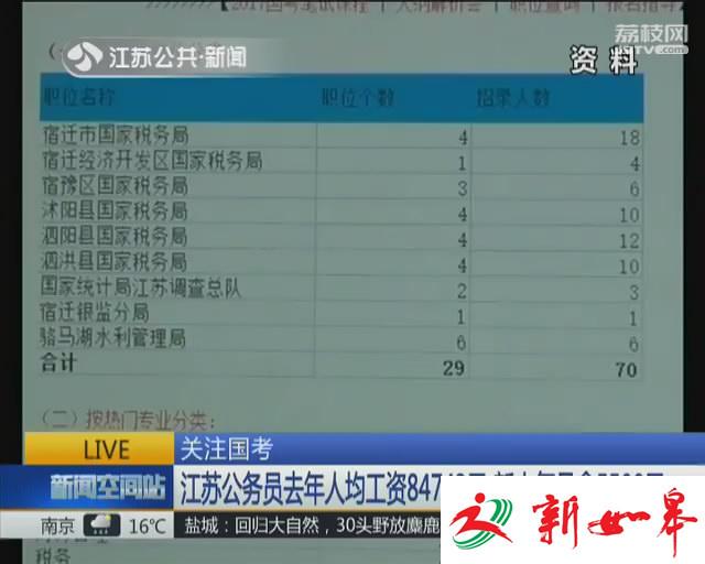就国考热持续升温,记者调查显示,江苏公务员去年人均工资84743元,新人每月5500元。值得关注的是,去年南京全市各级机关单位从业人员年人均工资首次突破了10万元。对于很多人来讲,公务员考试就像高考一样,是一个只要靠努力就能实现的目标。
