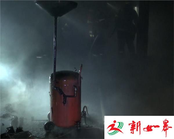 记者赶到现场时,大火己经被消防扑灭,但仍有浓烟不断向外冒,在室内还有三位消防人员拿着水枪在寻找余火,这时修理厂的老板说里面还有一只煤气罐没有拿出来随时有可能再次燃烧爆炸,一名消防员不顾生命危险,在另外两名消防员水枪的掩护下成功将煤气罐拿到室外公路边的花池中,避免了爆炸。
