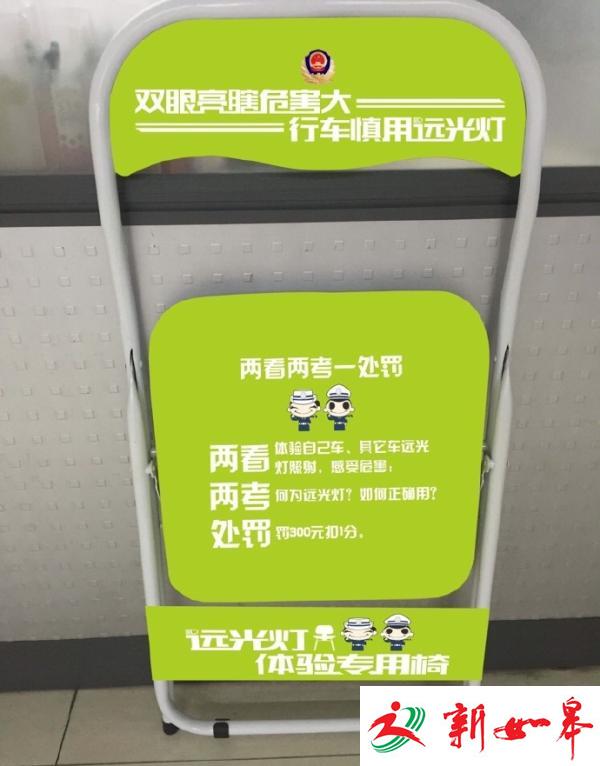 广东省深圳市公安局交警支队官方微博@深圳交警 11月1日消息称,#深圳交警行动# 今晚整治乱开远光灯,查到就坐这把“绿椅子”好好体验一分钟!